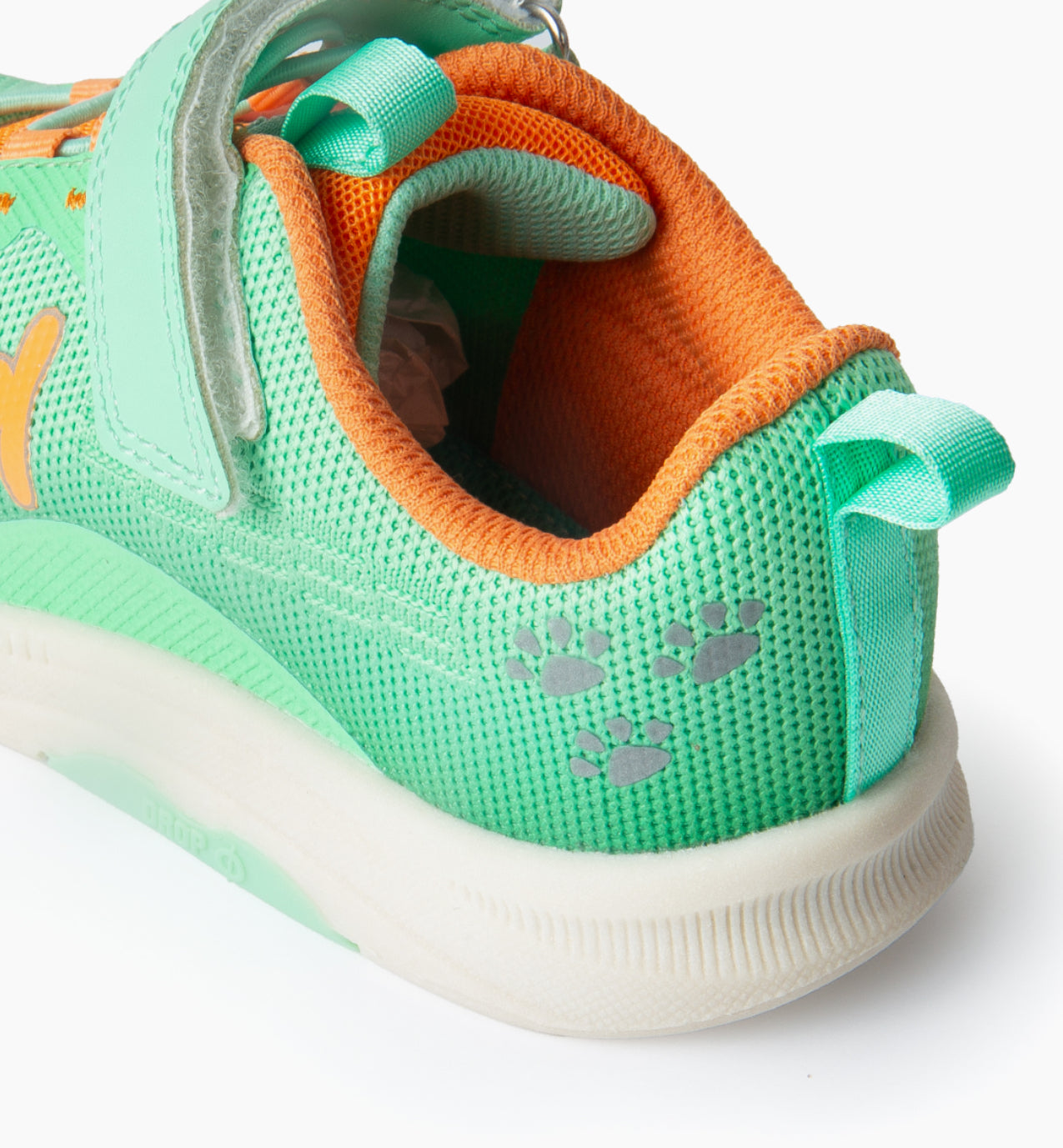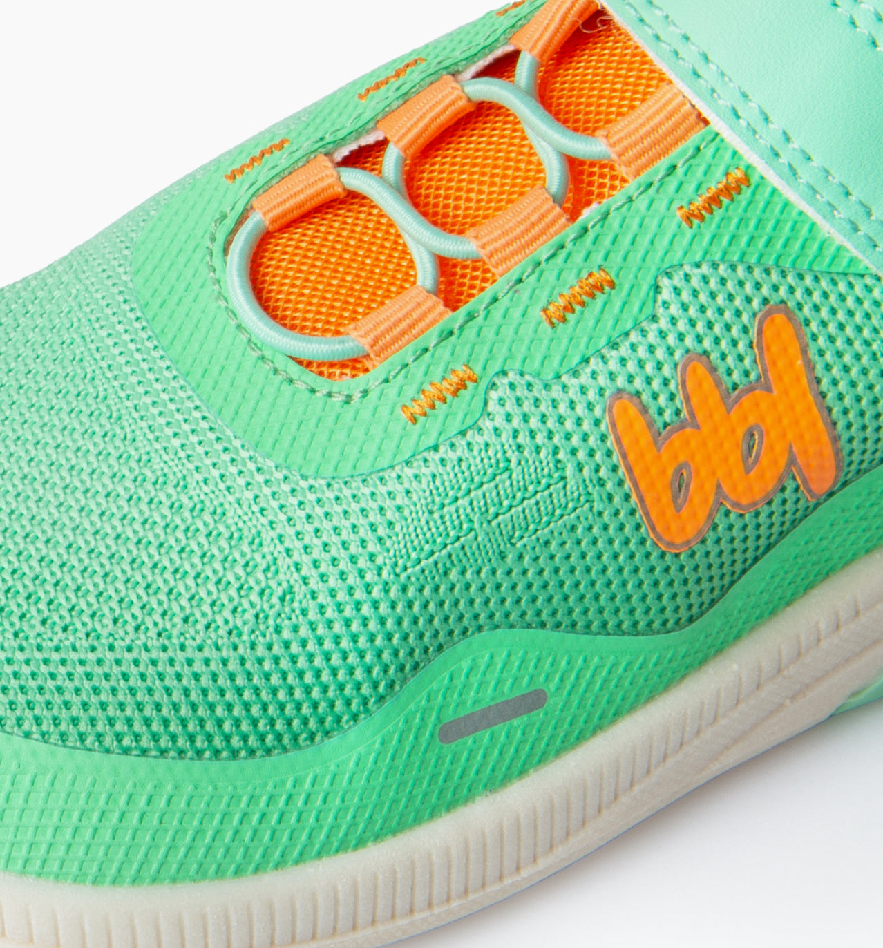 Fabricada en tela técnica knitting y microfibra, incorpora refuerzos en puntera y laterales para una mayor resistencia y durabilidad. Su diseño en color verde con detalles en naranja aporta un estilo deportivo, enérgico y moderno, ideal para el dÃa a dÃa o actividades fÃsicas.