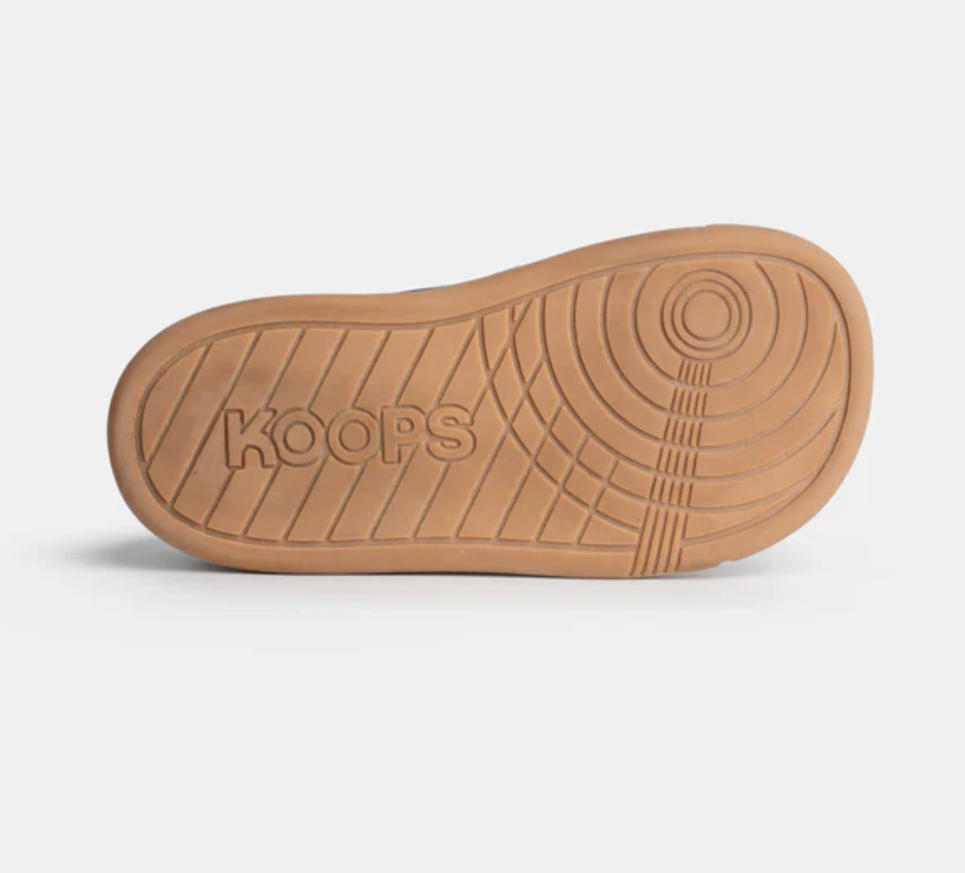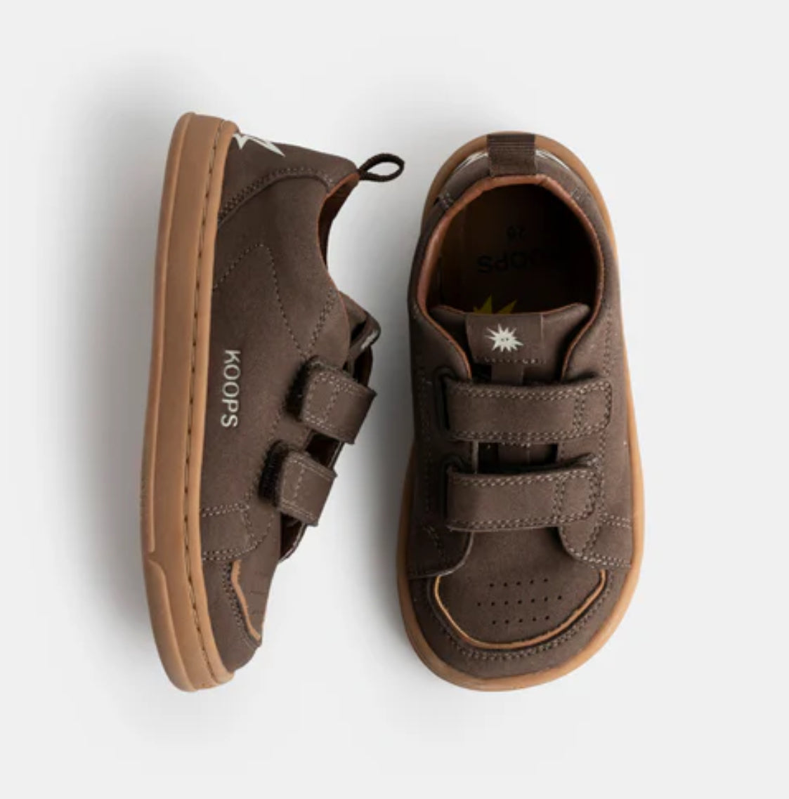 Las Rafi Marrón de Koops combinan un diseño cálido y atemporal con toda la comodidad del calzado barefoot, pensado para acompañar el movimiento libre y saludable de los más pequeños.