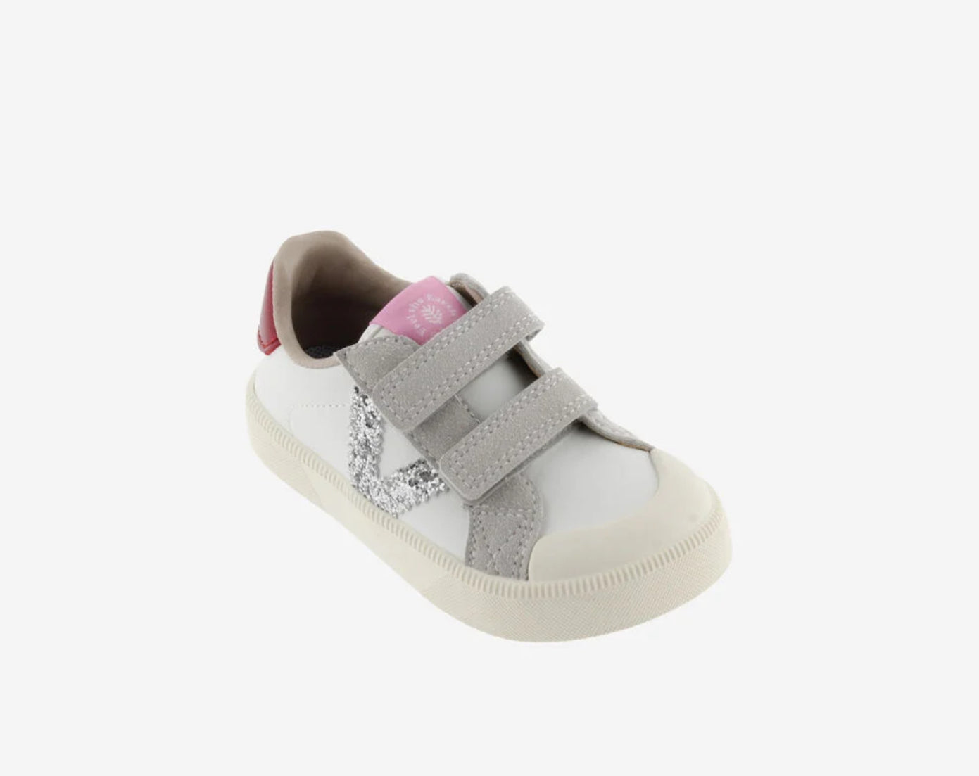 Las Victoria Oliver Plata son unas zapatillas deportivas barefoot diseñadas para acompañar cada paso de los más pequeños con comodidad, libertad y estilo. Fabricadas en material efecto piel, destacan por su “V” lateral en glitter plata ✨ y el detalle de color en la pieza trasera, que aportan un toque brillante y divertido sin perder su elegancia.